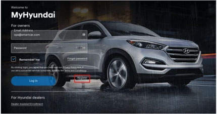 1. Navigate to owners.hyundaiusa.com and click on "Register."